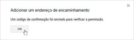 6 - Será enviada uma mensagem de confirmação para a conta que você configurou para receber as mensagens. Há duas formas de confirmar o encaminhamento: utilizando o Código de Confirmação ou clicando no link de ativação . O dono da conta de email deve lhe fornecer o Código de Confirmação ou apenas clicar no link de ativação para autorizar o recebimento das mensagens.