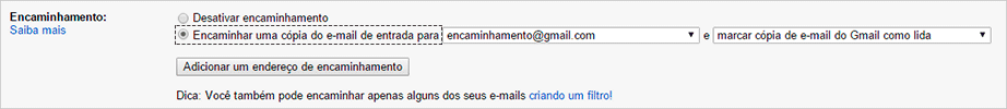 - arquivar cópia do Gmail: O e-mail encaminhado será arquivado;